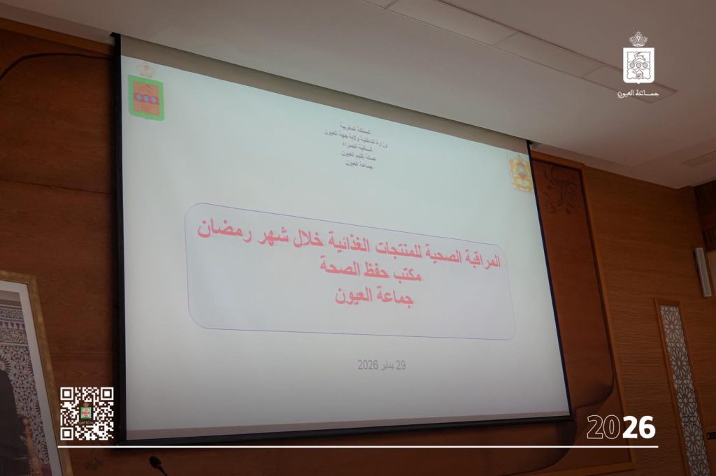 عقب ذلك، قدّم الدكتور مراد أورحمان، مدير مكتب حفظ الصحة والمحافظة على البيئة بجماعة العيون، عرضًا حول برنامج المراقبة الصحية للمواد الغذائية، استعرض فيه عمليات التفتيش بنقاط البيع والتخزين، والإجراءات الوقائية المعتمدة لضمان احترام معايير السلامة الصحية، إلى جانب الجهود التحسيسية الموجهة للمهنيين.