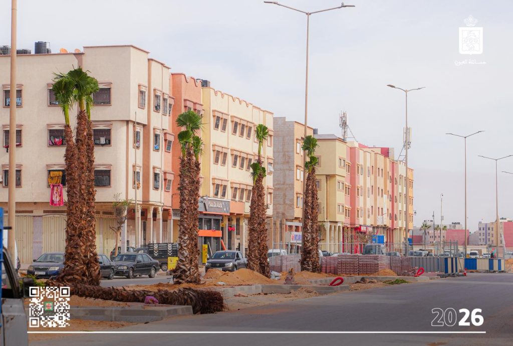 كما همّت الأشغال غرس أشجار النخيل على طول الشارع، في خطوة تروم تعزيز الطابع الجمالي والبيئي للمجال الحضري، والمساهمة في تحسين المشهد العام وخلق توازن بين البنية التحتية الصلبة والمساحات الخضراء. ويواكب ذلك تثبيت عناصر للتأثيث الحضري، تشمل أعمدة إنارة حديثة، ومقاعد عمومية، ولوحات تشوير أفقية وعمودية، بما ينسجم مع المعايير المعتمدة في التخطيط الحضري العصري.