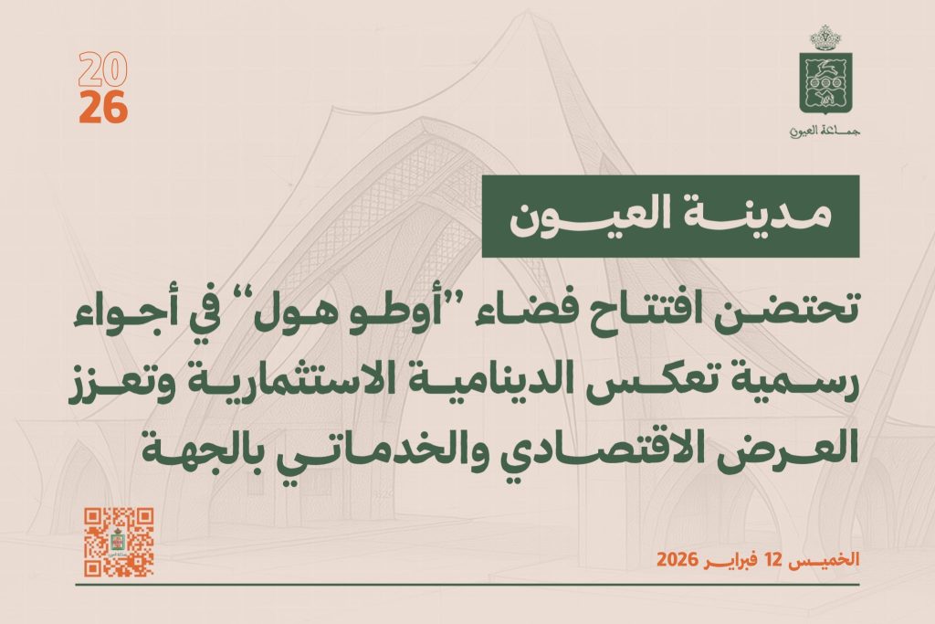شهدت مدينة العيون، مساء اليوم الخميس 12 فبراير 2026، افتتاح فضاء “أوطو هول” في أجواء رسمية مميزة، عكست الأهمية التي يكتسيها هذا المشروع على المستوى الاقتصادي والاستثماري بالمنطقة.