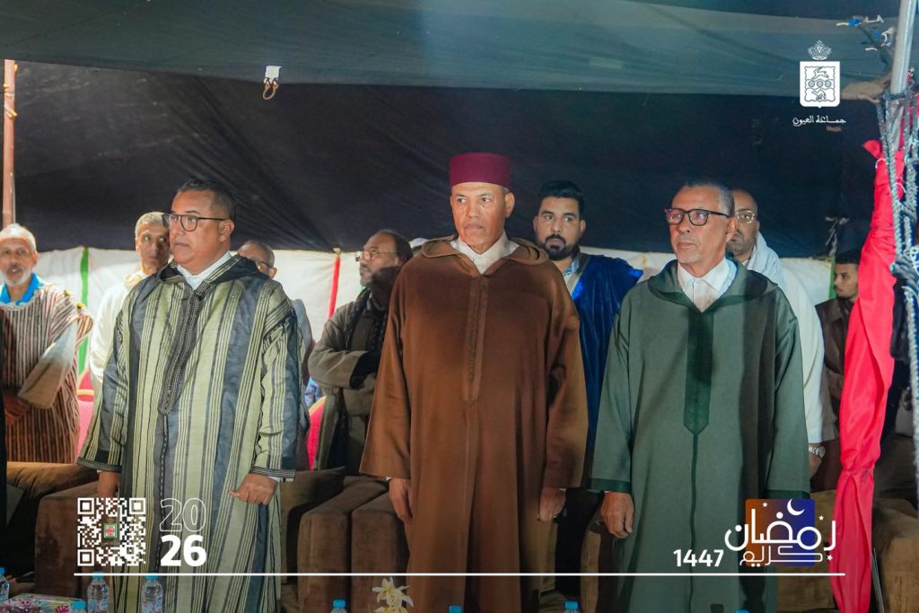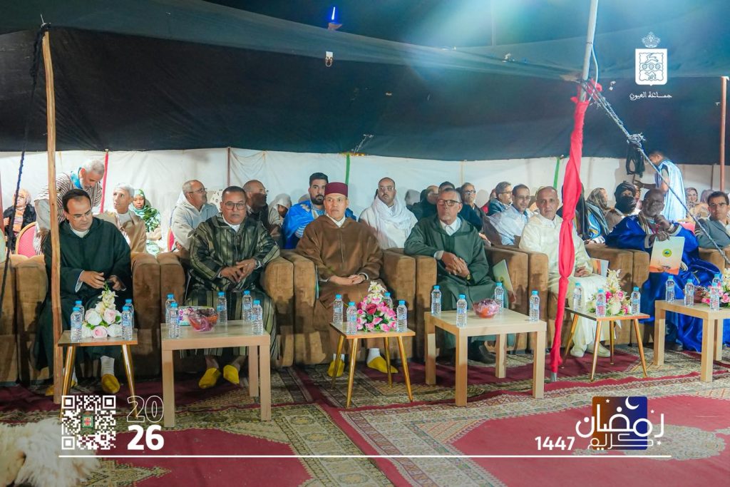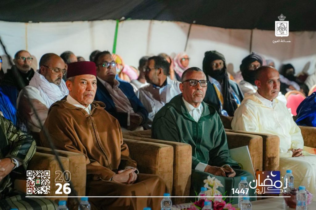 وقد ترأس حفل افتتاح هذه التظاهرة السيد عبد السلام بيكرات والي جهة جهة العيون الساقية الحمراء، بحضور السيد محمد صالح داداه نائب رئيس جماعة العيون، إلى جانب السيد بلاهي اباد، نائب رئيس جهة العيون العيون، والمدير الجهوي للثقافة بالعيون، وعدد من ممثلي السلطات المحلية والأمنية، وفعاليات المجتمع المدني، إضافة إلى مهتمين بالتراث الحساني وعشاق فن المديح النبوي.