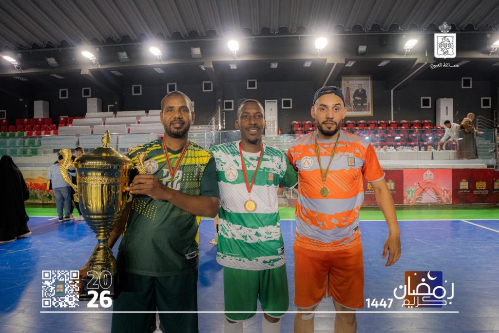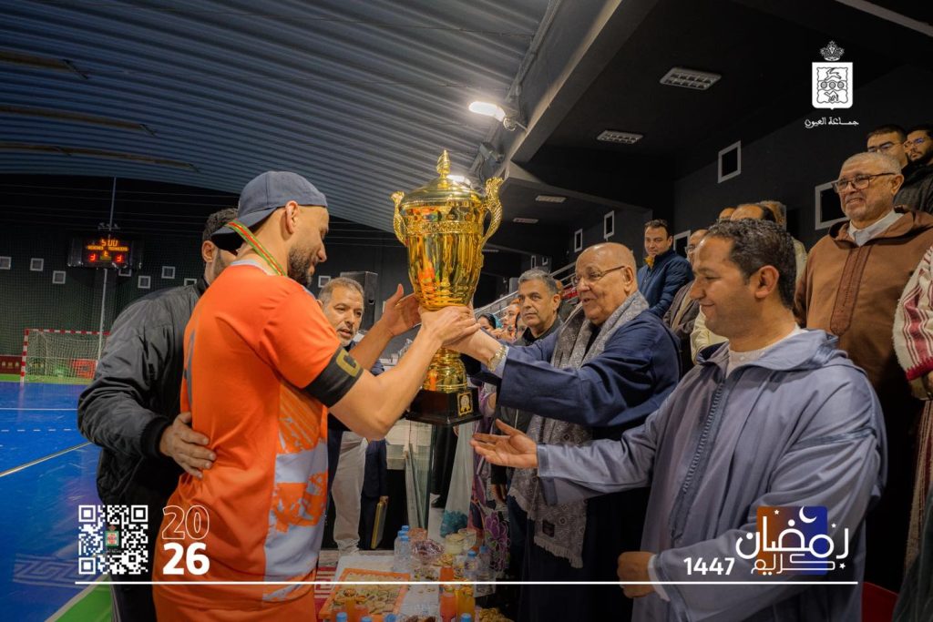 واختُتم الحفل بتتويج اللاعبين والفرق المشاركة، وسط أجواء احتفالية مفعمة بالفرح والاعتزاز، عكست نجاح هذه التظاهرة في تحقيق أهدافها الاجتماعية والرياضية والإنسانية، ورسخت مرة أخرى الدور الحيوي الذي تضطلع به جمعية الأعمال الاجتماعية لموظفي جماعة العيون في تنشيط الحياة الداخلية للمؤسسة، وتعزيز أواصر التضامن والتواصل بين موظفيها.