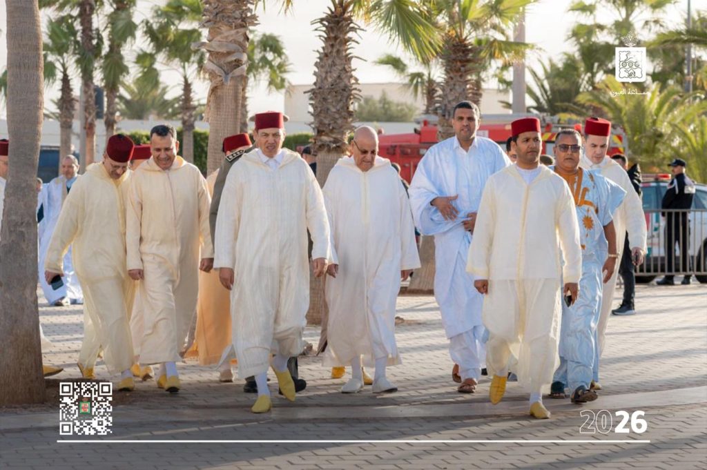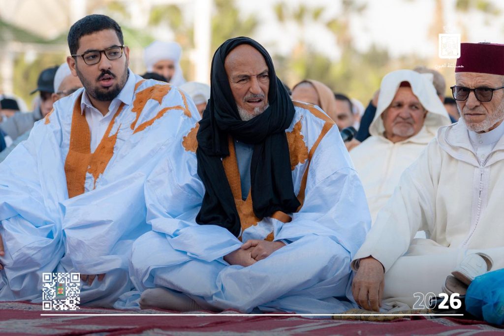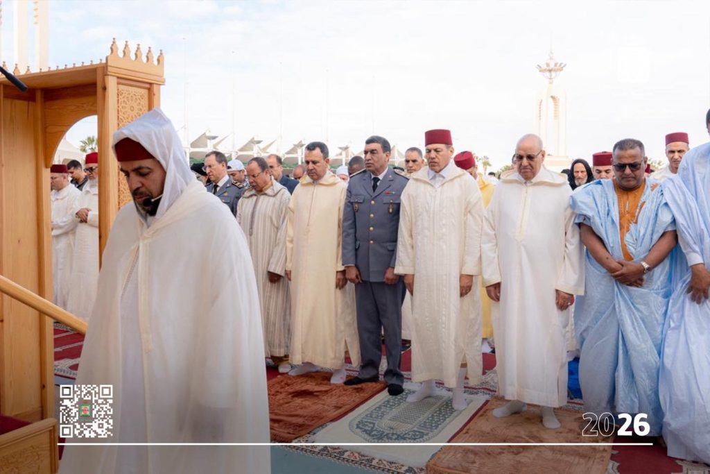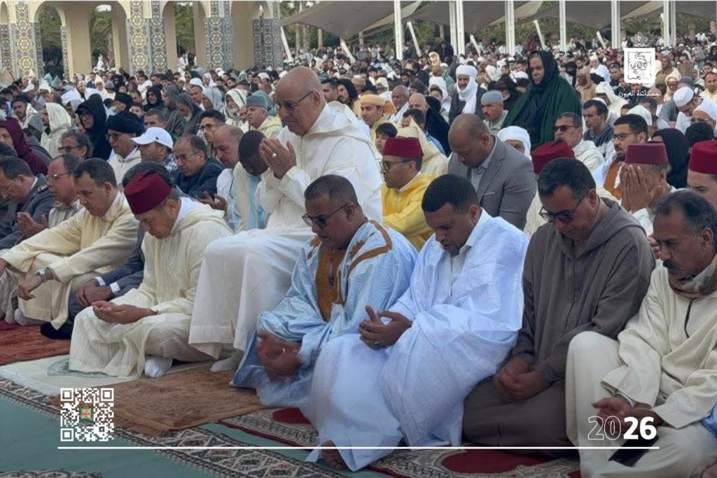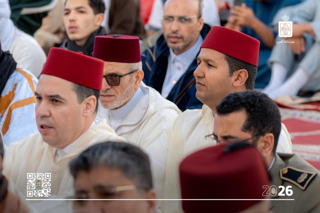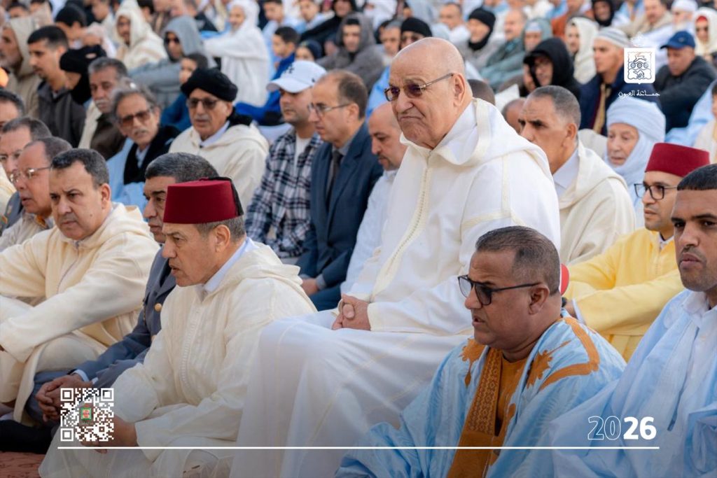 وقد تقدّم جموع المصلين السيد عبد السلام بيكرات، والي جهة العيون الساقية الحمراء، مرفوقًا بالسيد مولاي حمدي ولد الرشيد، رئيس جماعة العيون، وبحضور السيد بلاهي آباد، نائب رئيس مجلس جهة العيون الساقية الحمراء، والسيد مولود الكيرع، نائب رئيس المجلس الإقليمي للعيون، والسيد حسن أبو الذهب، والي أمن العيون، إلى جانب عدد من المسؤولين الإداريين، والشخصيات المدنية والعسكرية، والمنتخبين، وممثلي المصالح الخارجية، وفعاليات من المجتمع المدني.