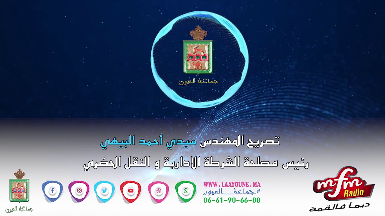 السلام عليكم، أيها السيدات والسادة، في إطار سياسة القرب، وتسهيلا للتواصل، قامت جماعة العيون بخلق بوابة إلكترونية مرفوقة بصفحات رسمية لمواقع التواصل الاجتماعي من أجل إشراك الساكنة وانفتاح الجماعة…