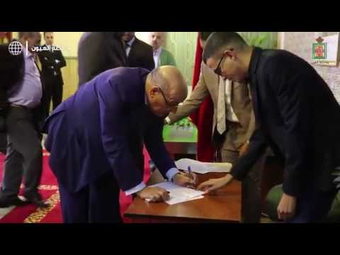لحظة استقبال السادة أعضاء، أطر وموظفي جماعة العيون لأشغال الدورة العادية لشهر فبراير 2018